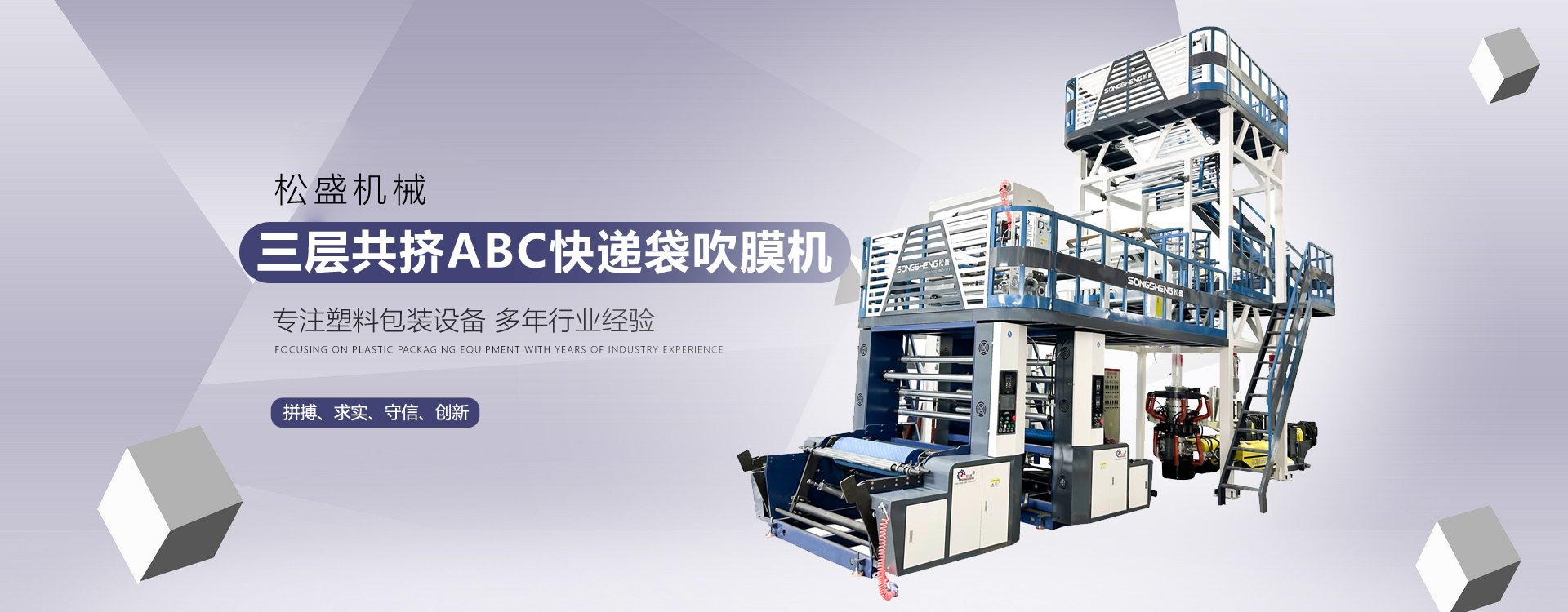瑞安市松盛機械有限公司,創(chuàng)辦于2008年,位于浙江省瑞安市,是一家主要從事成套塑料包裝設備的企業(yè),主要產品有ABC、ABA、多層共擠吹膜機、全生物降解吹膜機、全自動高速熱切制袋機、以及印刷機、造粒機等。產品遠銷歐美、東南亞、非洲、中東等。市場反應良好,產品深受客戶喜愛。公司秉承“科技創(chuàng)新使企業(yè)騰飛”的宗旨,公司研發(fā)團隊的不斷對產品改進和提升,先后榮獲國家高新企業(yè)、浙江科技型企業(yè)稱號,并獲得幾十項國家專利。 卓越的信譽,一流的品質,完好的服務是我們永恒的宗旨和奮斗目標,松盛機械愿與國內外客戶攜手共創(chuàng)美好明天。